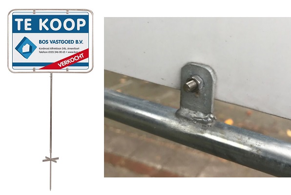 Eenvoudig aluminium makelaarsbord / immobord, elektrolytisch verzink, bestaande uit 3 delen - bordhouder, middenbuis en grondpen - biedt een veelzijdige en duurzame manier om een boodschap te presenteren. Eenvoudig in elkaar te schuiven en vast te schroeven, is dit bord perfect voor wisselende advertenties en informatie. Met een variabele lengte van 140 tot 200 cm kun je de grootte van het bord aanpassen aan jouw specifieke behoeften. Het ruime reclamevlak van 65 x 48 cm kan liggend worden gebruikt om een boodschap opvallend en duidelijk weer te geven. De buitenmaat van de geprinte 3 mm dikke dibond plaat is 65 x 48 cm en een reclamevlak van 60x43 cm. Levering inclusief montageset maar exclusief panelen.